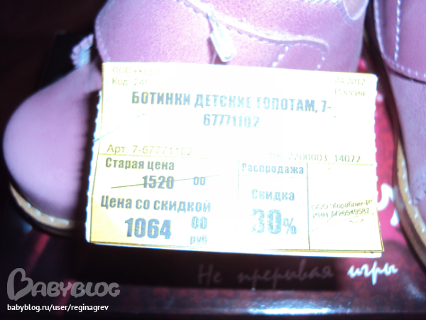 2. Ботиночки Топотам кожа на коже, р. 19, стелька 12 см, новые.Купила на днях в кораблике, а нам большие, цена на ценнике со скидкой 1064, отдам за 700