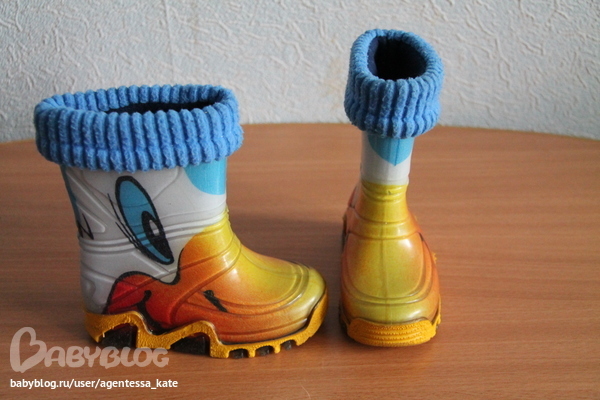 мы на фучика) у нас ножка 14 см, а эти сапоги 16-17 как бы велики совсем и вот не знаю, 14 уже маленькие, а 16 ещё большие как гусь в них)