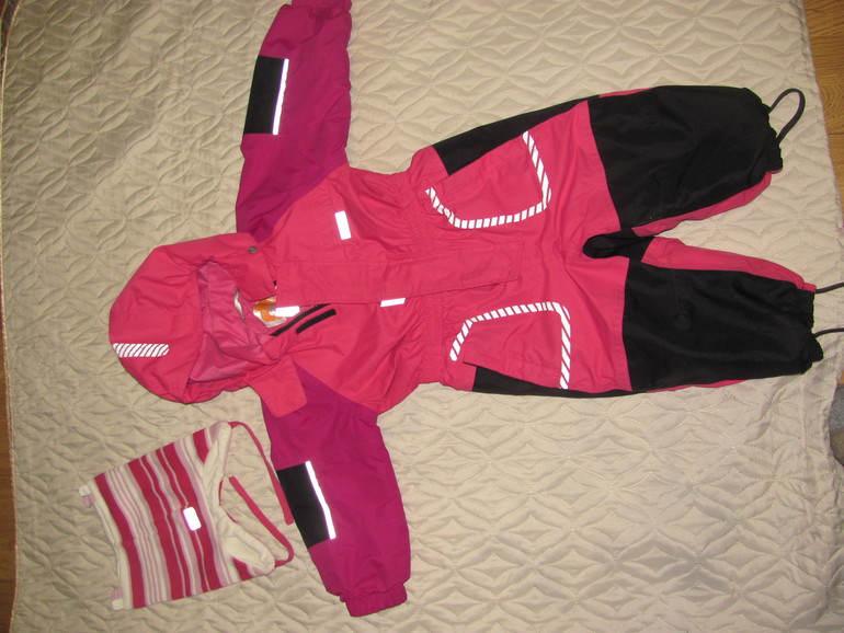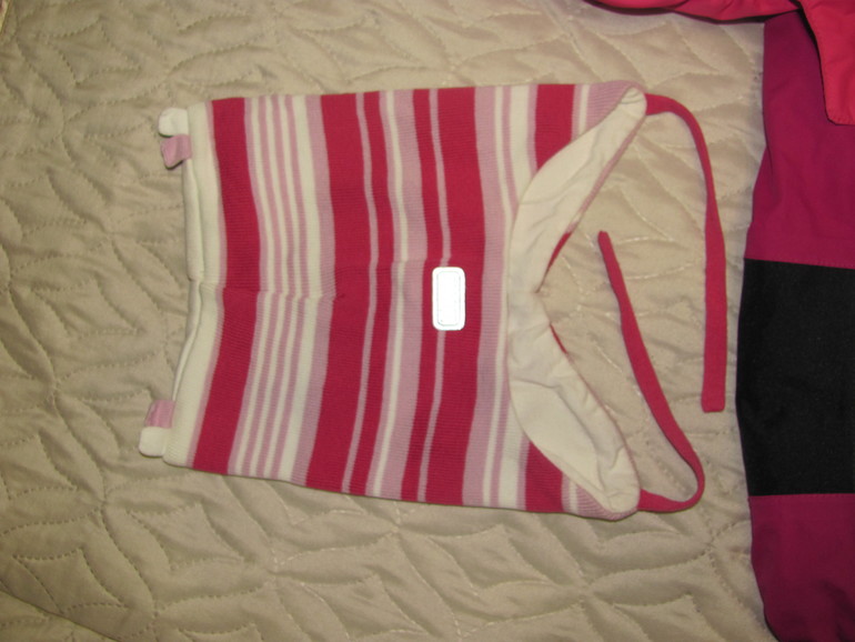 В комплекте есть шапочка той же фирмы р-р S (шерсть на хлопковом подкладе в ушках ветронепродуваемые вставки) носили даже зимой под кап.