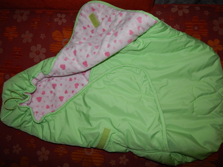Практичный удобный конверт, внутри мягкий трикотажный мех. Капюшон на кулиске. Конвертик очень мягкий, внутри приятный на ощупь. Пользовались 2 недели, состояние идеальное. Брала за 1500, отдам за 600. Производство Россия.