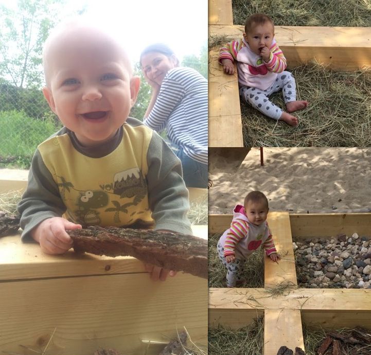 1 зона с сенсорными коробами. как в парке Измайлово. Для того, чтобы обеспечить ребенку разнообразный сенсорный опыт, а маме или папе снять стресс в коробе с сеном.