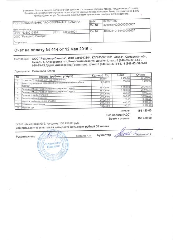 Расчитали нам курс лечения в Речевом санатории г.Самары на 156 тыс.