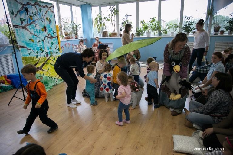 проводит спектакли и музыкальные концерты для малышей, я видела и только начинающих ползать детишек. Мы посещали и концерты, и спектакли, пока больше нравятся именно спектакли, так как они интерактивные, есть сюжет и «актеры», которых можно щупать. Главный плюс конкретно для нас - возможность двигаться во время представления, так как Уля не сидит особо на месте (на новогоднем утреннике в ДК, например, моя дочка полезла на сцену и носилась за актерами по залу, пришлось уйти). Тут полная свобода действий (в пределах разумного, конечно). Из минусов - стоимость, 1100 рублей за спектакль. Но мы ходим раз в месяц обычно, поэтому это не так сильно бьет по карману. На ББ есть организатор спектаклей в Балашихе, Анна