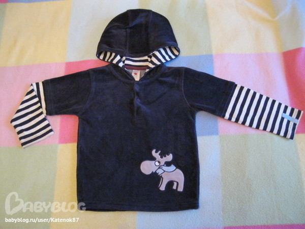 Велюровая+хлопок кофточка с капюшоном Беби клаб, р.92, в идеале, 300 р