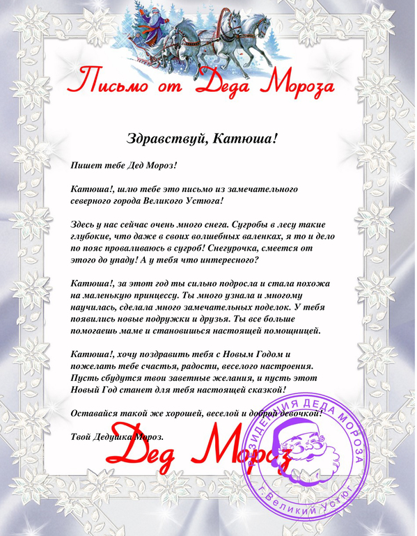 Ваш малыш поверит в чудо ,получив персональное письмо от Деда Мороза .,ведь для деток это волшебная сказка.