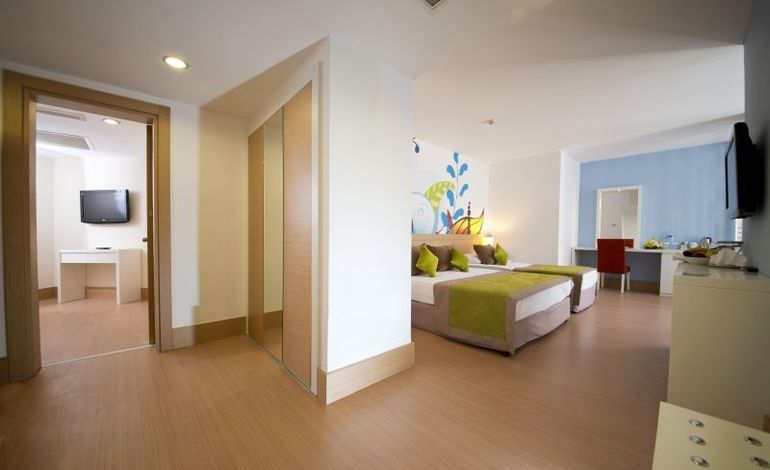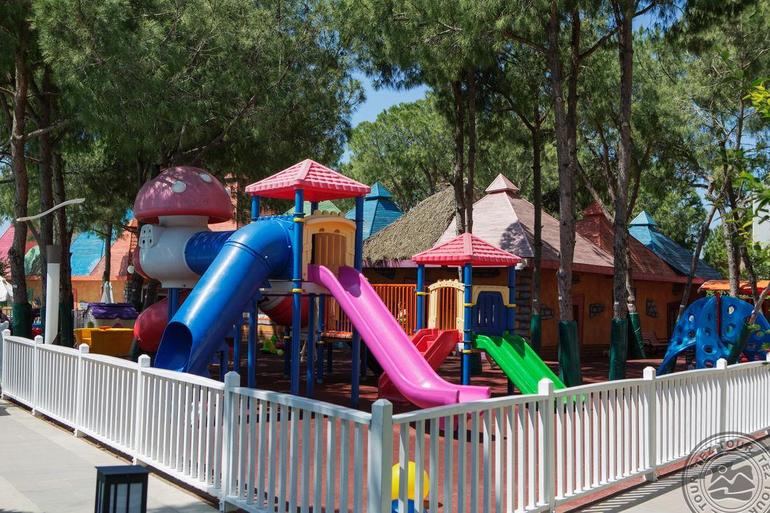 Маленьких гостей ждет настоящий детский рай с развивающими играми, специальными мероприятиями, празднованиями дней рождений и вечерними шоу-программами. На территории мини клуба находится батут и отдельный детский аквапарк с 4-мя водными горками. Кроме этого в отеле имеется основной аквапарк, 7 профессиональных водных горок которого поднимут адреналин и подарят массу впечатлений не только подросткам, но и взрослым.