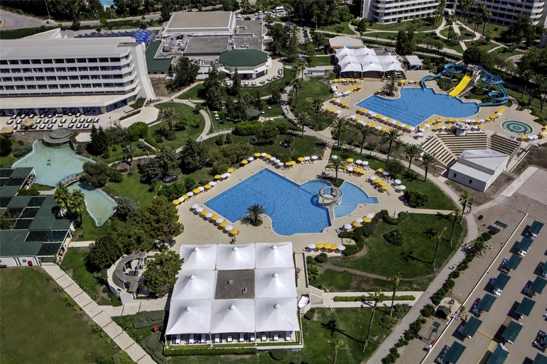 Отель расположен на берегу моря, в Белеке, в 35 км от аэропорта. Общая территория отеля составляет 97.000 м ², что является плюсом - есть где гулять по территории.