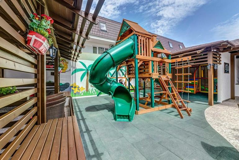 ДосугУютный отель для семейного отдыха находится на первой береговой линии. В пешей доступности располагается все необходимое: аквапарк, парк детских аттракционов, магазины, рынок и аптеки