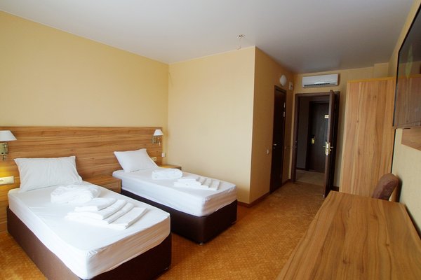 В трехэтажном здании отеля расположено 60 комфортабельных номеров различной категории: Стандарт, Полулюкс, Люкс двухкомнатный.