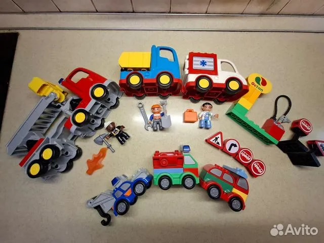 1. Пожарная машина, скорая помощь, грузовик, набор машинок, дорожные знаки, бензоколонка. 2 тысячи рублей.