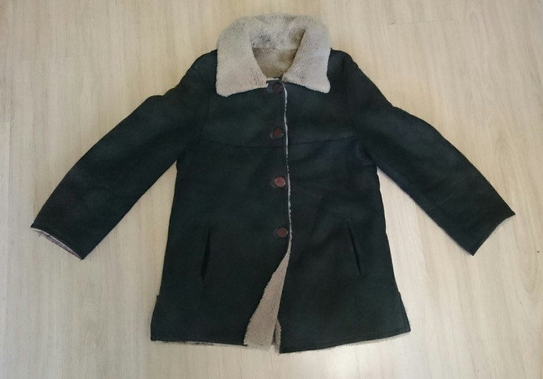 Внутренняя часть немного испачкана в краске. Раньше дубленка была двусторонней, теперь из-за краски, внутренней частью наружу её не получится носить.