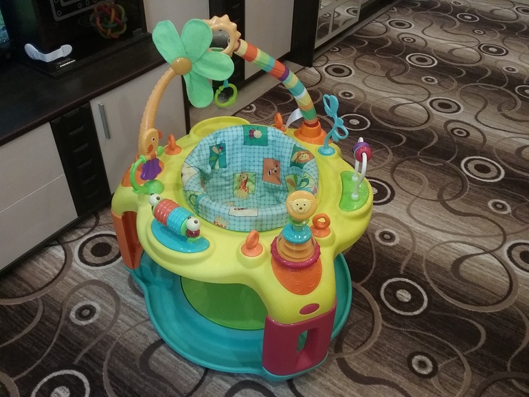Уникальный развлекательный центр позволит ребенку подпрыгивать без пружин. Сиденье для подпрыгивания вращается на 360, чтобы обеспечить доступ ко всем игрушкам. Изменяемая высота позволяет развлекательному центру 'расти' вместе с ребенком. Встроенная панель для игрушек легко моется.