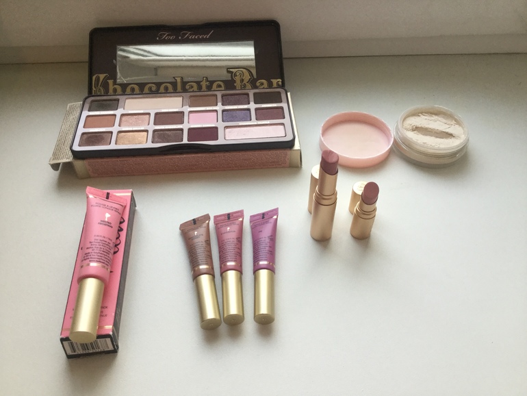 5. СЕТ ПОМАД Too faced полноразмер Sugar Daddy бу 2 раза + помада travel size Naked Dolly новая, 1500.
