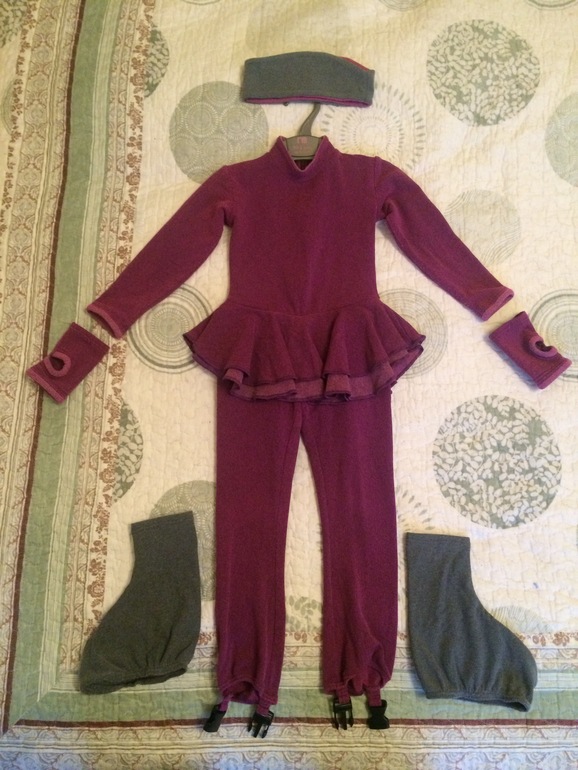 Костюм для фигурного катания+повязка на голову, полуперчатки и чехлы на коньки.