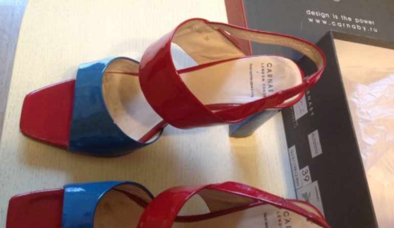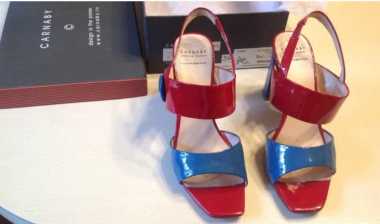 Летние открытые туфли CARNABY.(босоножки)р.39 (носила на 38-38,5).Безумно удобная колодка.Не смотря на высокий каблук-нога как в тапочках!Резинка хорошо фиксирует ногу,каблук устойчивый.Удобные,яркие!