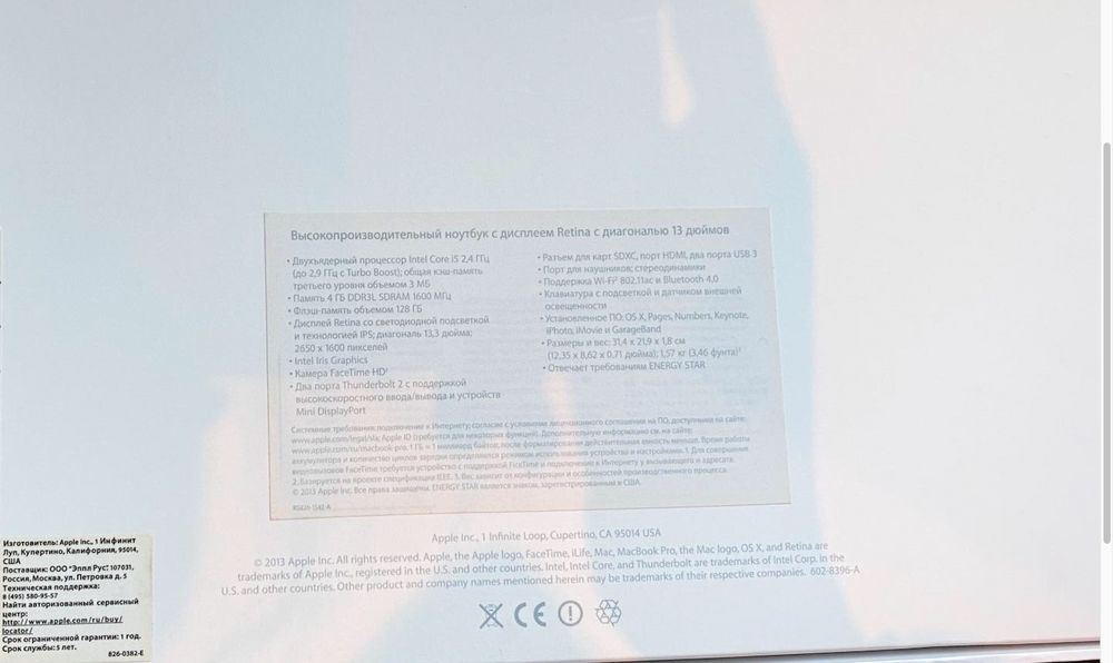 2,4 intel Core i5 4GB DDR3 128GB SDD 13,3" 2560x1600 display.