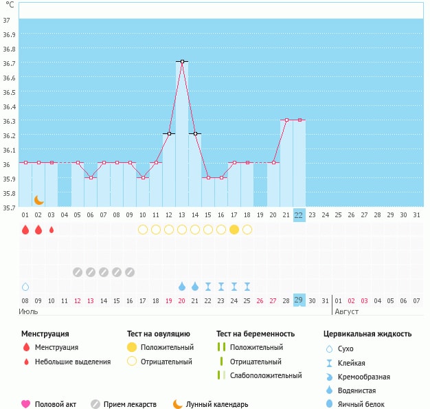 измеряла базальную температуру после , все время держалась 36,2 - овуляции не было.