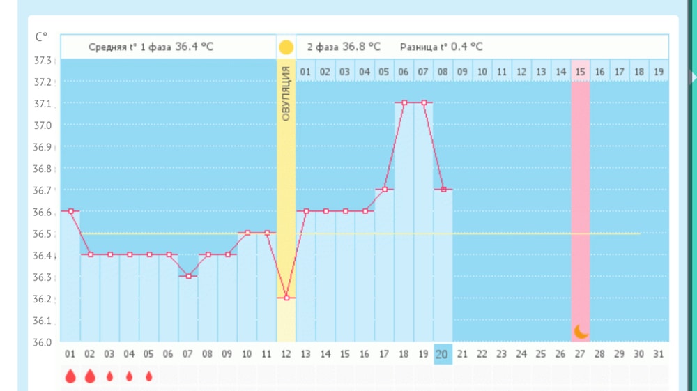 Обычно у меня ровные без скачков, если была О. Смущает резкий подъем после 7дпо. Для 2 фазы у меня бт максимум 36,4-36,5 а потом в день Х снова 35.8-36