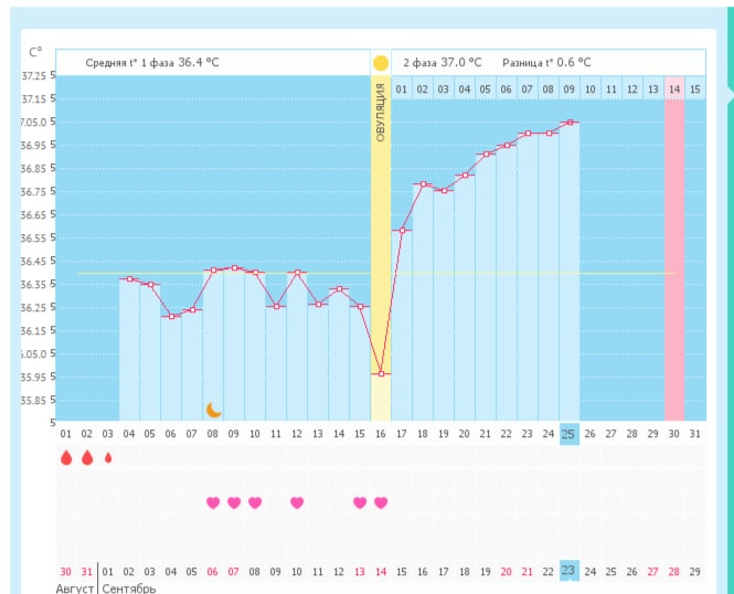У всех на форумах электронные графики такие удобные и понятные, через мое приложение не очень удобно смотреть. Я записывала в заметки дополнительно к графику