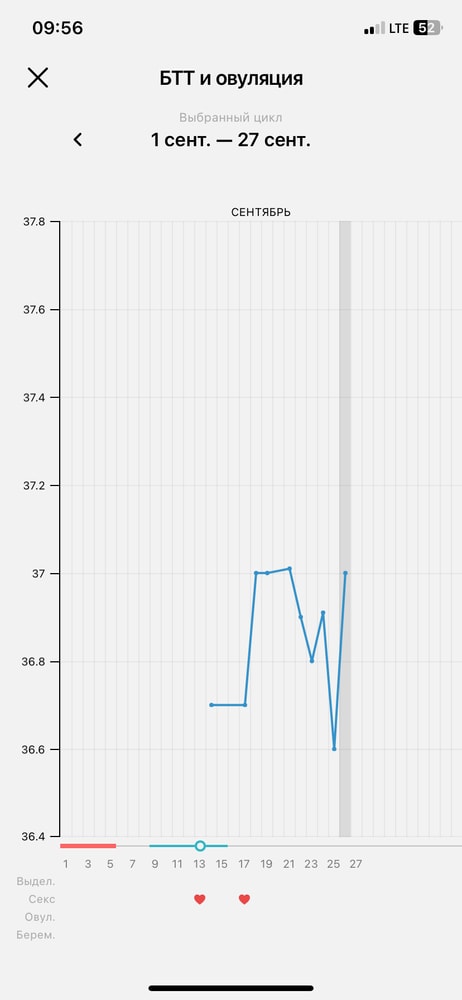 Привет! График в комментарии. 7 был яркий тест около 18 часов, и на следующее утро тоже. По ощущениям О была вечером 8 числа, но приложение ставит другой день. А вам как кажется? Цикл 27-29 дней.