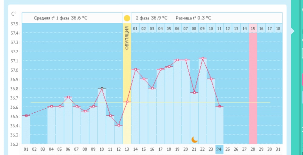 Девочки, подскажите пжл, что значит значок луны на графике базальной температуры в местном приложении ?