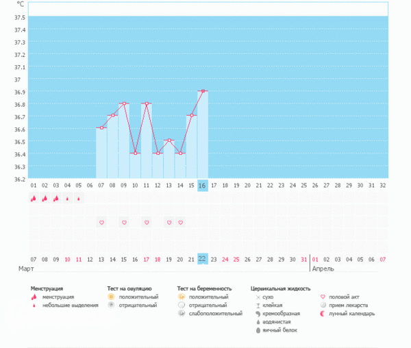 Да, в эти 2 повышения скорее всего были недостоверные значения (бессонные ночи или более позднее измерение), так что я на них особо внимания не обращаю! Циклы всю жизнь были стабильные, а как стали планировать вообще ерунда какая-то творится! Всегда цикл был день в день 31-32 дня (т.е. строго в определенную дату месяца). 2 последних цикла вообще ужас-42 дня и 35 дней. В этом цикле болей пока не было. Узи делали на 14 дц, ДФ 19 мм, сказала придти сегодня на 16-й дц, вот я и ждала, что сегодня уж точно нарисует эту линию, а график почему-то молчит!!!!!