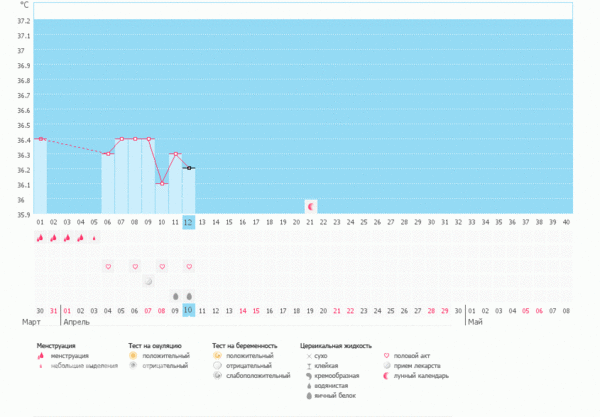 Слушай, ну ты подумай, если бы была О позавчера-вчера, то появилось бы желтое тело, которое начало бы вырабатывать прогестерон, и сегодняшняя температуры была бы минимум 36,6 (на 0,2 градуса выше самого высокого из последних 6 значений).