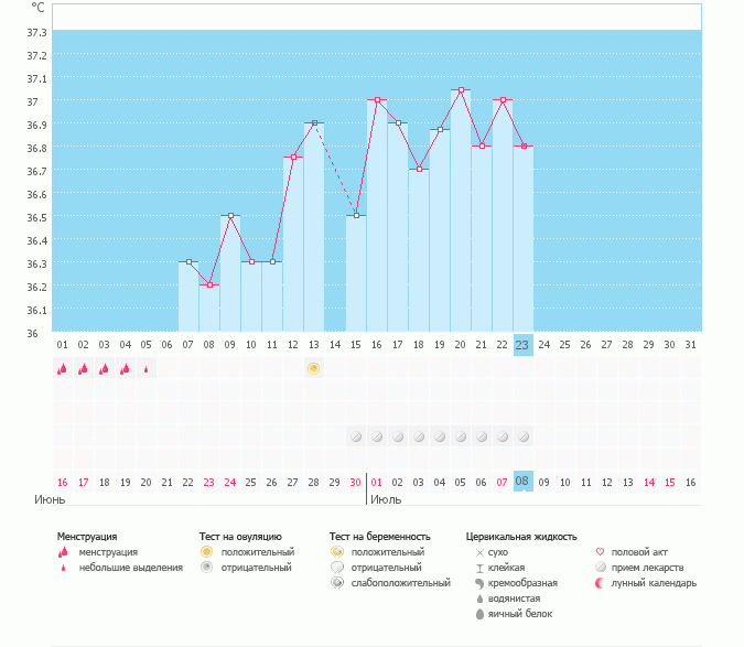 Ага,3 цикла,темперетура не росла во второй фазе выше 37,ну хоть так не прыгала,пью Дюф 2 цикл,очень надеюсь на него,судя по графику что то в организме поменялось)))))),ну а может это влияние лета,погоды,количества фруктов.Вообщем продолжаю верить в ЧУДО!!!!!
