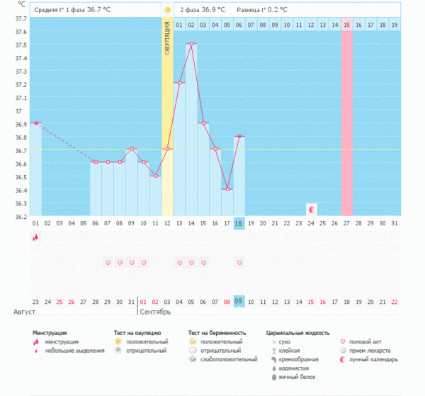 Танюш,не находишь что мой график чем-то похож???такой же скачок на целый градус...Только я не болела.Интересно,чтобы это значило?..