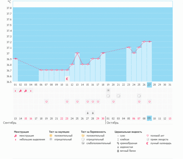 Беременность, признаки по БТ, есть ли шанс?Девочки БТ 37,2 для меня, это она подросла; 27 день цикла цикл хрен пойми какой в прошлый раз на 24 день начались М предпоследние два месяца цикл был 29-31 дней бт моя всегда 37 ну максимум 37,1. Насморк, в туалет часто, ТТ нормальная тесты 7 числа делала чистые. График внутри