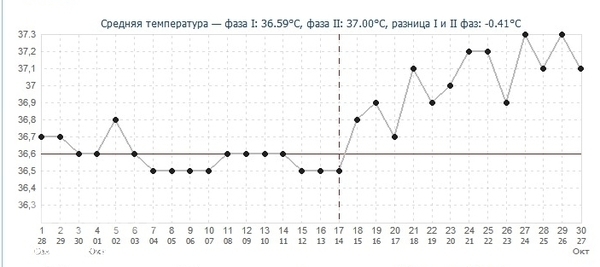 Беременность, признаки по БТ, есть ли шанс?У меня в цикле 29-30 дней!!!!!!!!!Так все дни держится температура 37!!!!!. 37.3 37.2 37.3 37.1тест я боюсь делать даже не покупаю, по идеи должны вчера или сегодня придти сегодня уже 30й день… грудь опухла как и при монстрах… когда лежу иногда ноет спина… несколько раз покалывал низ живота… в левом боку..График но он рассчитан на 30 дней цикла.