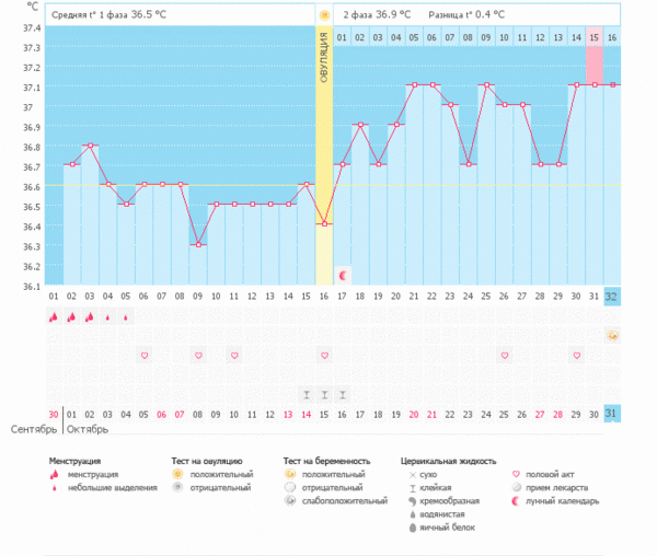Ольга, мой график немножко похож на ваш тоже БТ упала до 36.7 но МЕ пока нет, а что по ощущения у вас было, у меня немножко живот тянет но не там где обычно а больше похоже что в ПЯ