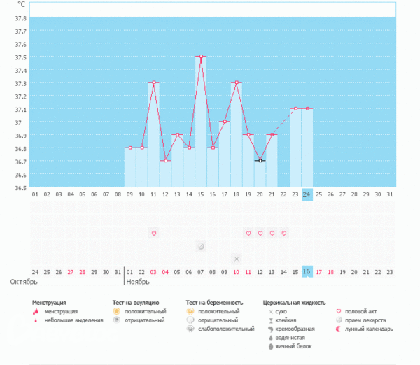 да, измеряю впервые, почти в одно и то же время в 7-8 часов утра, не вставая с постели. я вот уже записалась к гинекологу на след. неделе пойду, так переживаю, мы с мужем 4 месяца пытаемся забеременеть а что то не получается, мне посоветовали бт измерять, вот начала, а тут вот какой то ужас..