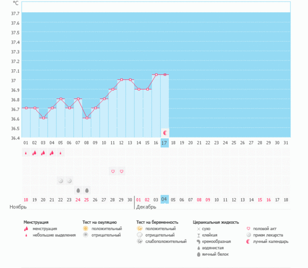 Сегодня 04 декабря на 17 день температура такая же 37,05. Уже интригует эта температура)))