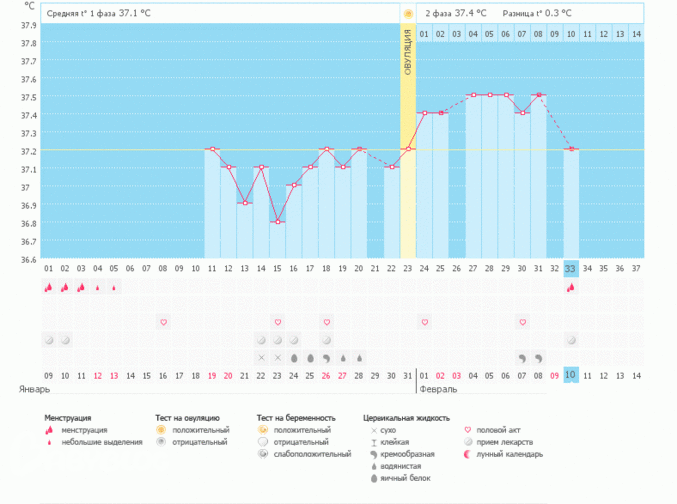 ОЦЕНИТЕ мой график! Всё ли в порядке?Здравтсвуйте! Это мой первый график, вот что получается... до этого сдавала гормоны, врач прописала уколы фолликулина и прогестерона по фазам со второго дня цикла (через день) (эстогенов мало и да и прогестерон что-то шалит(( ).......завтра начинаю курс лечения. Перед этим циклом делала УЗИ, был ановулятоный цикл до этого и есть мелкокистозное изменение яичника левого (как я поняла из-за того, что фолликул не лопнул). Ещё пью циклодинон, фолиеву кистолу с йодомарином (в первой фазе) и витамин Е (во второй фазе). Скажие, пожалуйста, была ли овуляция в этом цикле, не поздняя ли?? И что вообще можно сказать по графику, просто я в этом мало что понимаю...Заранее спасибо!!!!