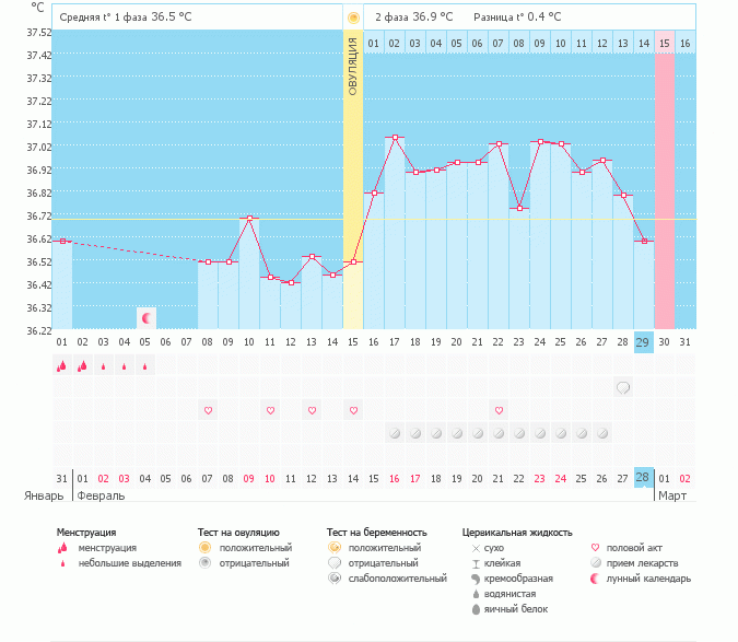 привет у меня 2 цикла уже замечательная БТ во 2-й фазе, 37.1-37.2, разница температур 0,5-0,6гр. Но за 3 дня до М БТ начинает плавненько ползти вниз и приходят монтсрики.. так что и БТ хорошая это еще не показатель Б я такой для себя вывод сделала