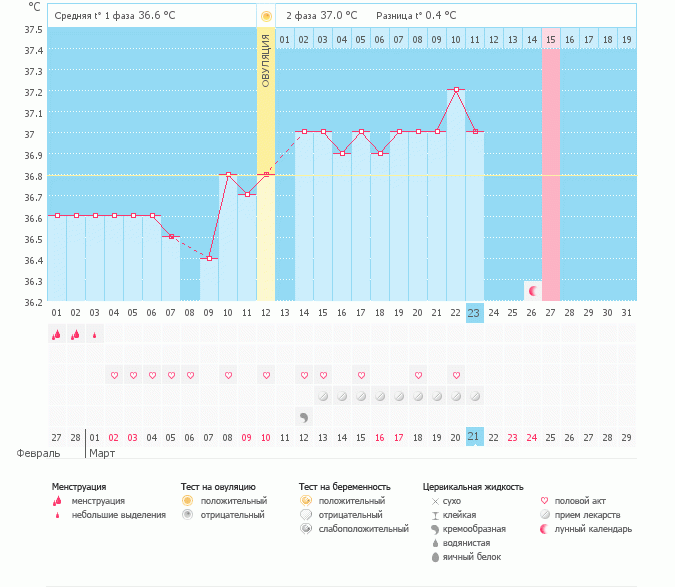 нет О была так как на графике (УЗИ) т.е ловили под присмотром... Программа правильно поставила, на 9(7.03.2013) дц на узи были дом ф 21 мм справа, эдик 7,5. Следующее УЗИ 12,03,2013 (14 д.ц) дом ф не очерчивается+желтое тело эдик 8 мм