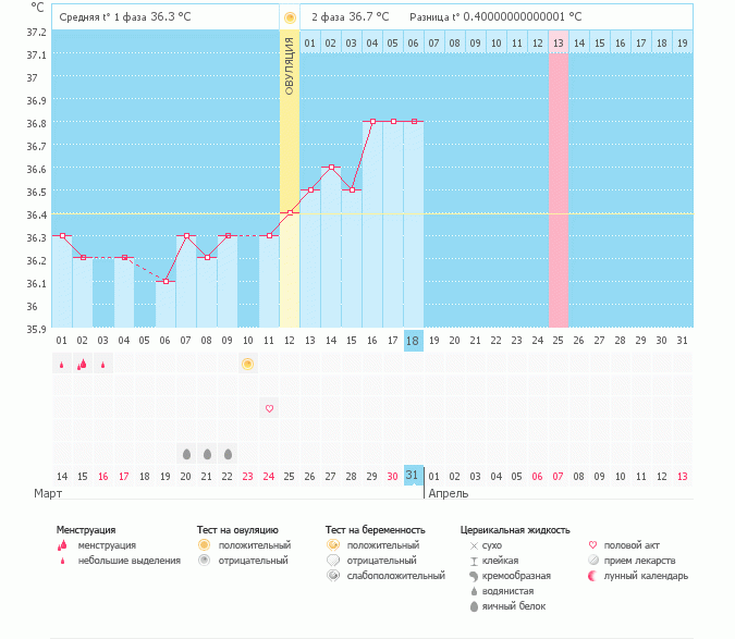 и вот ещё что странно - овуляция по тесту точно была, но программа тут выставила сама.. не знаю что точнее.. И ещё я месяца три уже измеряю температуру, ни разу во второй фазе такой высокой не была, максимум 36,6 ... гормоны сдавала - все в пределах нормы