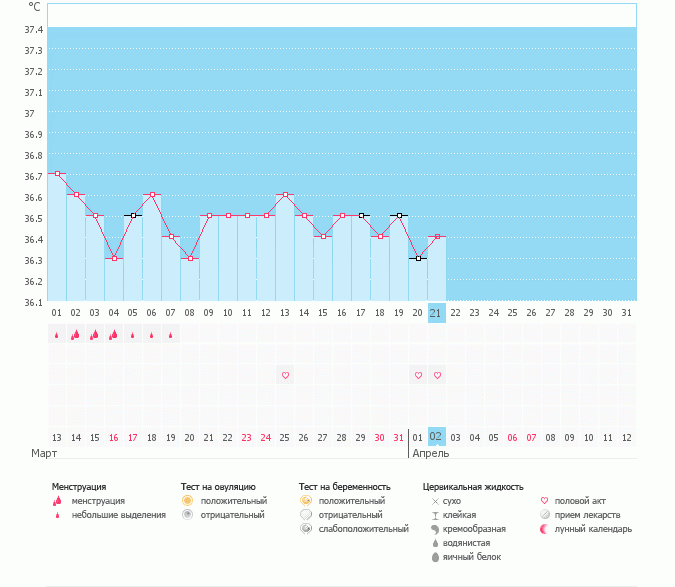 нет. ничего такого не было. но у меня в марте всегда почему то цикл больше .дней 35 в те года был. но я как то не мерила температуру. детей не планировала