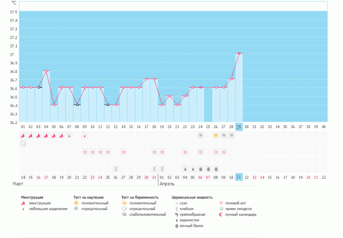 ОЦЕНИТЕ мой график! Всё ли в порядке?Помогите, пожалуйста, понять была ли овуляция? Пл тесту и по симптомам (тянет живот, были небольшие коричневые выдиления в тот день, а до этого и после выдиления как белок яичный) а температура поднялась не резко...не понимаю