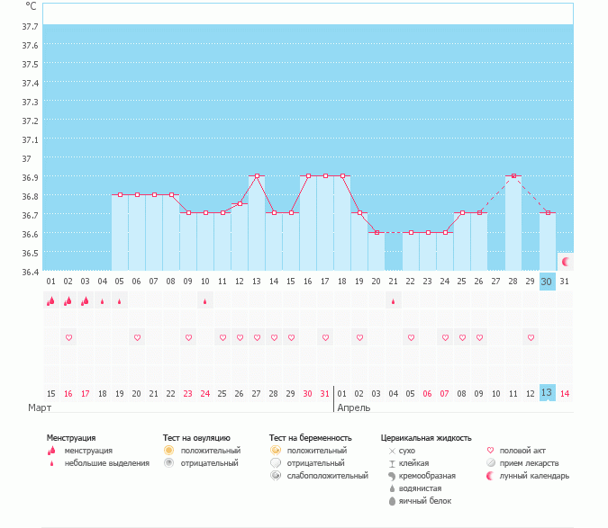Простите, конечно, но гормоны сходят с ума. В первой фазе очень высокие температуры. значит эстрогена не хватает, следовательно О нет. А во второй "фазе" они (температуры) еще ниже, чем в первой - прогестерона тоже нет. Либо с измерениями что-то не так, либо надо гормоны смотреть и лечить.А тест, на мой взгляд, чист....Простите, что так жестко и прямо... но...