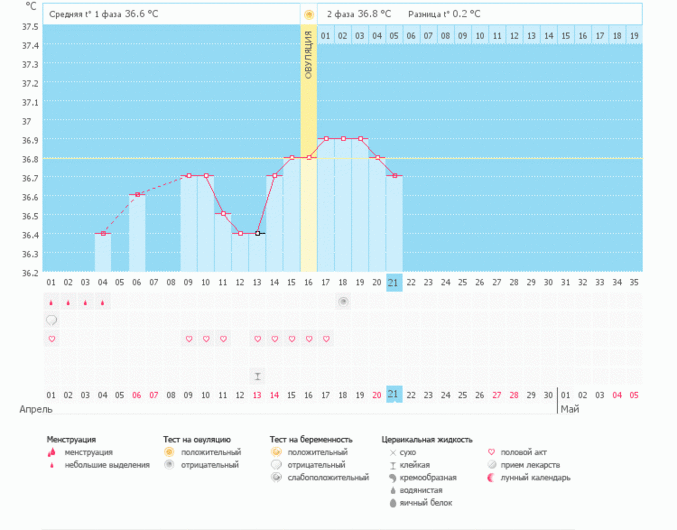 затем 14.03.2012 пришли месячные 1 апреля, но такое , что было у меня не было ни когда!!! когда ходила в туалет была кровь и так 4 дня и график показал овуляцию на 13 день, и по ощущениям она была в этот день!!! вообще с таким циклом разве можно забеременеть!???
