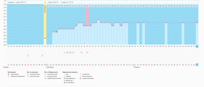 Отличный график, шикарный, беременный. Она так и встанет чуть повыше к месячным будет. Твой масик выделяет ровно гормон пргестерон, когда увидишь положительный тест добавь дюфастона.