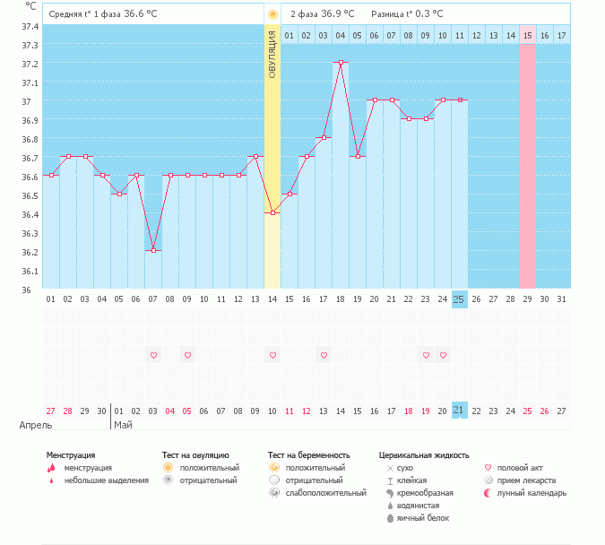 вот у меня тоже такой красивый график, но сегодня температура упала, так что ждите 13-14 дпо