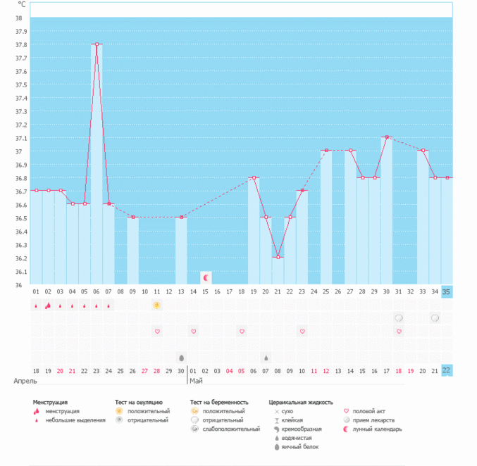 тут точно то ответ не дать, измерения вели не каждый день, скорее всего О была на 21 день цикла.