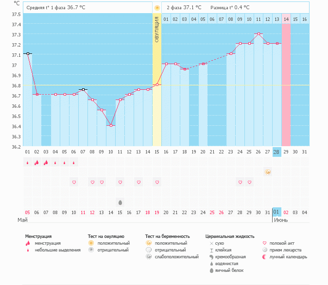 Почему Т поднялась в конце цикла? По графику у вас на 16 день уже 37! У меня вот вообще до 37 так и не поднялась ни на день.