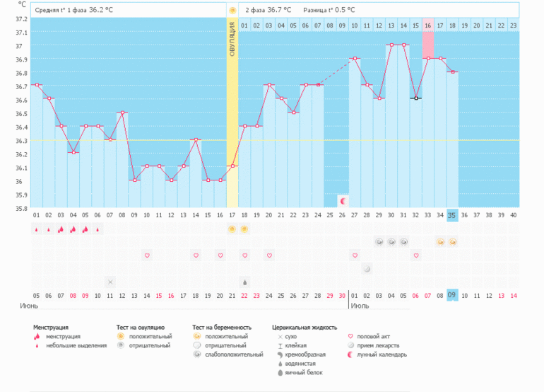 ой да опечатка, конечно 4 июля) Да 37.0 это был мой максимум, и то 2 раза))) остальные значения низкие довольно таки. Но как видите это не помеха, все индивидуально!!! Желаю Вам чтобы все получилось!!!