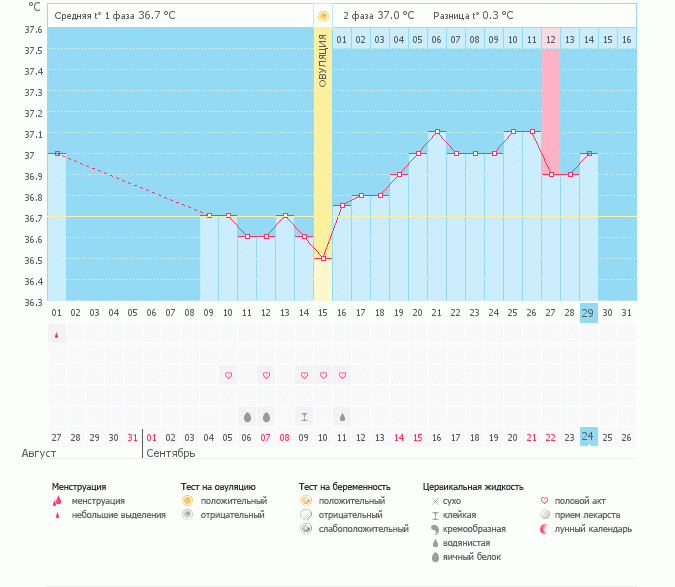 График базальной t°, цикл от 27 августа