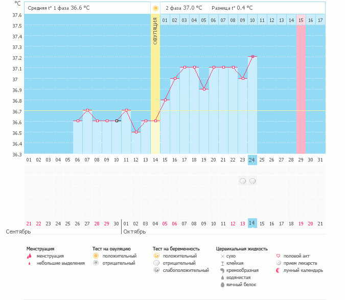 Предположим, что имплантация произошла на 7-ой день после овуляции и исходим из того, что в этот день уровень ХГЧ "подскочил" до 2 mUI. На следующий день уровень ХГЧ удвоился и составляет "целых" 4 mUI. На 9 ДПО опять удвоение и 8 mUI. Хотя беременность уже наступила, но для теста с чувствительностью от 25 mUI уровень гормона еще очень низок, поэтому тест все еще будет отрицательным. Только на 11 день после овуляции уровень ХГЧ первый раз пересекает границу в 25 mUI и тест на беременность может в первый раз показать слабую вторую полоску. При этом в наших расчетах мы не учитываем того, что содержание ХГЧ в моче может быть намного ниже, чем в крови и у каждой женщины этот уровень индивидуален. А теперь представьте себе, что имплантация произошла не на 7-ой ДПО, а только на 10-ый (тоже норма!). Это значит, что по нашим расчетам первую полосочку можно увидеть только на 14 ДПО. Вот мы и подобрались к определению задержки. Обычно длина второй фазы составляет около 14 дней и именно поэтому производители тестов советуют проводить тесты на беременность только после задержки, т. е. самое раннее на 15 ДПО. Вероятность имплантации в зависимости от ДПО Говоря о том, что имплантация происходит обычно на 7-10 день после овуляции, нужно знать, что изредка случается ранняя и поздняя имплантация. Вероятность имплантации в зависимости от ДПО представлена в списке:3-5 дпо - 0.68% 6 дпо - 1.39% 7 дпо - 5.56% 8 дпо - 18.06% 9 дпо - 36.81% 10 дпо - 27.78% 11 дпо - 6.94% 12 дпо - 2.78%......."а вообще график у Вас красивый...ттт...чтоб ни-ни....Удачи!!!