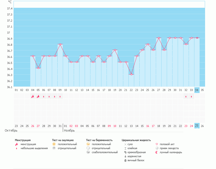 Менструация и БТс мужем планируем ребенка, веду график БТ. Мой цикл - 35 дней, последние М были 23 октября и вчера вдруг снова начались (правда не обильные). БТ не падает (36,9), а тест отрицательный((